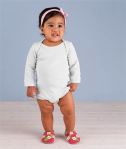 4411 Rabbit Skins Infant Baby Rib Long-Sleeve Creeper Only the best for the little ones. 100% combed ring-spun cotton 5.0-oz. 1x1 baby rib knit Flatlock seams Double-needle ribbed binding on neck, shoulders, sleeves and leg openings Reinforced three-snap closure White is sewn with 100% cotton thread Sizes: NB-18M